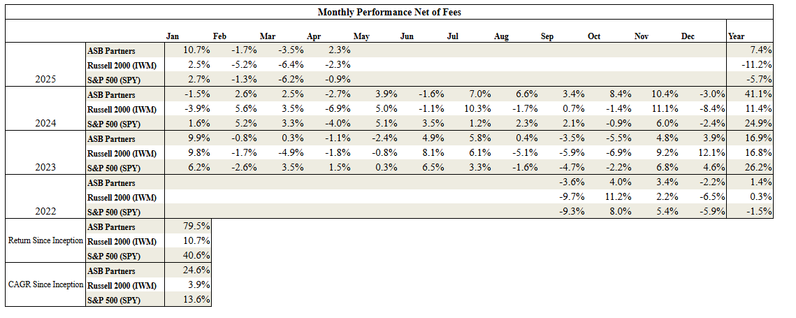 ASB Partners April 2025 Performance