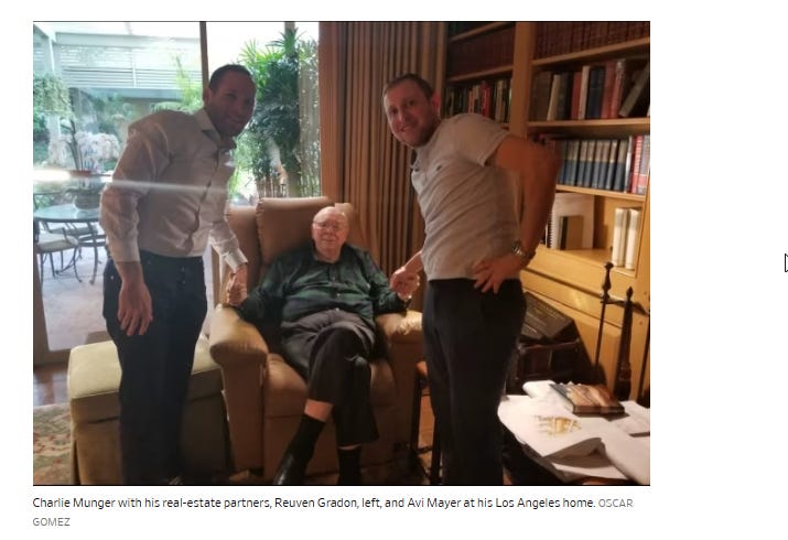 When Mayer partnered with his childhood friend, Reuven Gradon, to invest in real estate, Munger studied their early moves. A few years later, he offered to back the young men and their company, Afton Properties. āIām graduating you,ā he said. Starting around 2017, the three men purchased nearly 10,000 āgardenā apartments in Southern California, becoming one of largest owners of these low-rise apartments in the state.