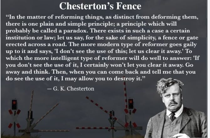 Start listening at minute 29…Great example of Chesterton’s Fence