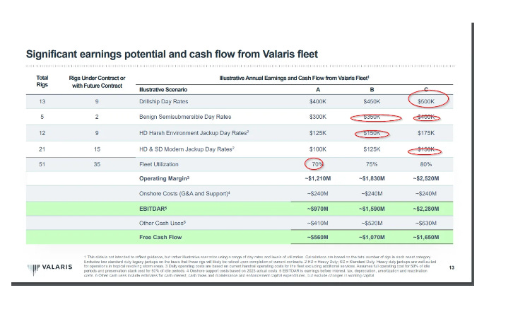 Their backlog is pushing ~$500,00/day for drillships…over the next two years, their book of business will reset at higher rates independent of what happens to the price of oil.