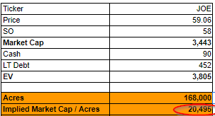 First, the valuation: St. Joe. has a $3.4 billion market cap and is trading at around ~$20,000/ acre: