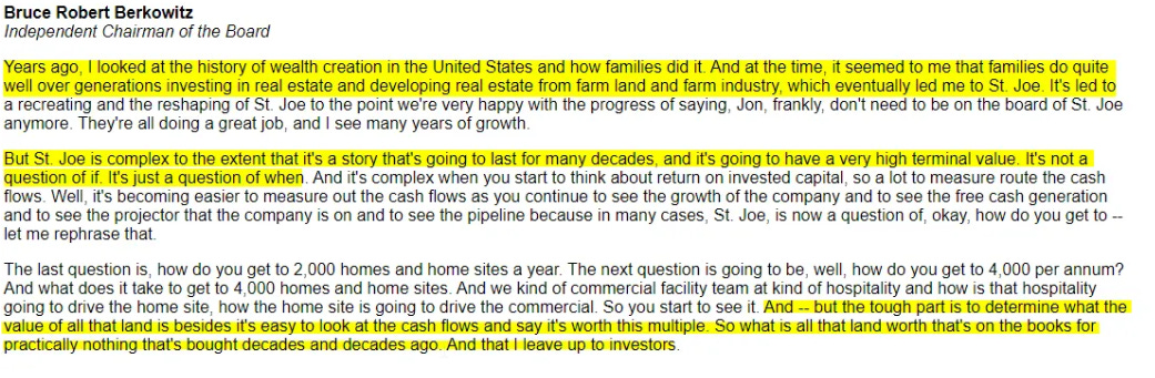 1. St. Joe has already shown that they can monetize its land bank through homesite sales and the development of recurring streams of revenue: