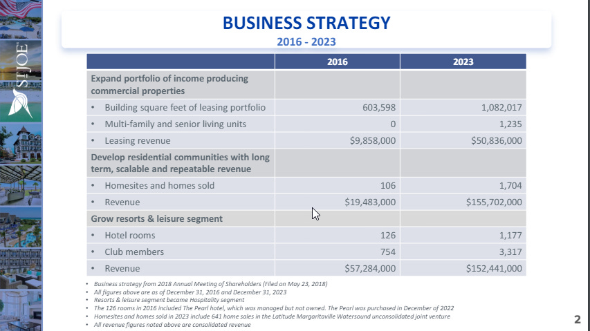 Since 2016, they have invested ~$1bil in building out their various Master Planned Communities, Commercial, and Hospitality Projects: